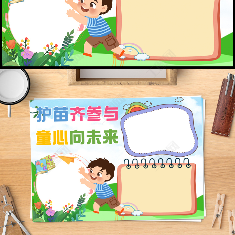 2023護(hù)苗齊參與童心向未來手抄報卡通簡約護(hù)苗行動word電子小報模板