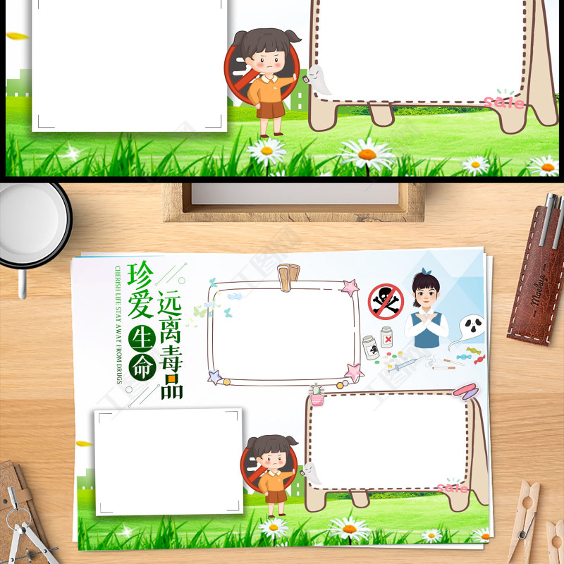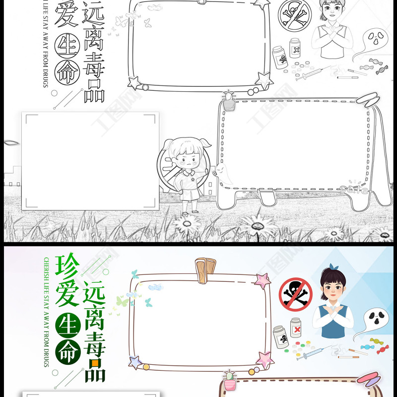 國際禁毒日卡通小報(bào)珍愛生命遠(yuǎn)離毒品模板下載 Array