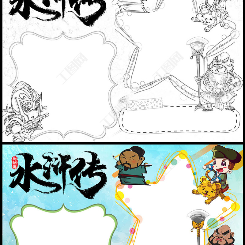 讀書手抄報 > 2023水滸傳手抄報創(chuàng)意卡通風(fēng)中國四大名著水滸傳簡介讀后感電子小報模板