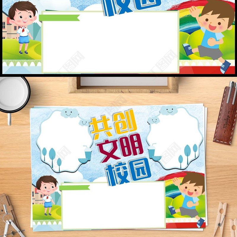 文明禮儀小報可愛卡通共創(chuàng)文明校園小報模板下載 Array