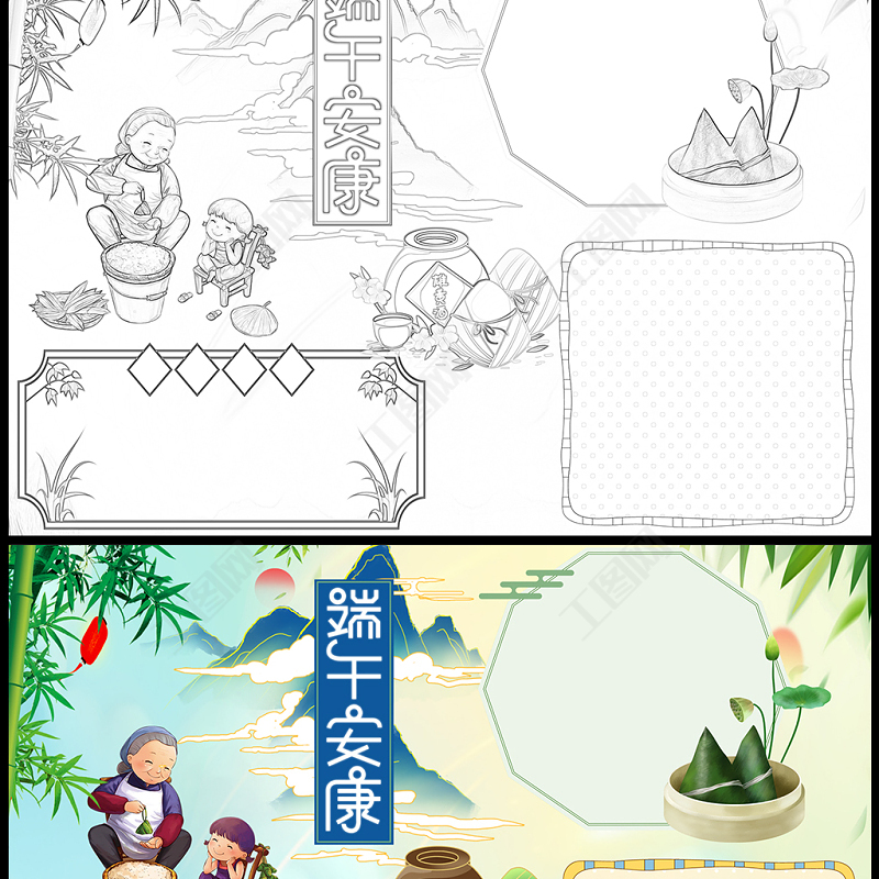 2021端午粽香手抄報卡通風(fēng)格中國傳統(tǒng)文化端午節(jié)活動卡通小報模板包含