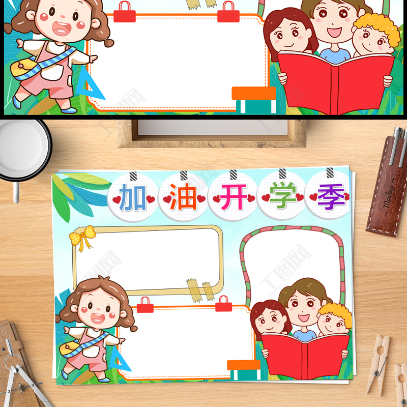2023加油開(kāi)學(xué)季手抄報(bào)童趣可愛(ài)新學(xué)期新目標(biāo)word電子小報(bào)模板