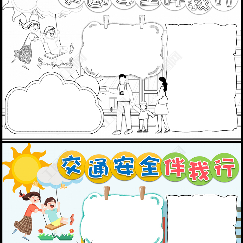 2023交通安全伴我行手抄報(bào)清新卡通風(fēng)交通安全五要五不要word電子小報(bào)模板 Array