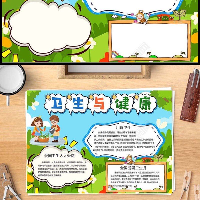 2023衛(wèi)生與健康手抄報(bào)卡通風(fēng)全國(guó)衛(wèi)生月健康與我成長(zhǎng)小報(bào)手抄報(bào)電子小報(bào)模板