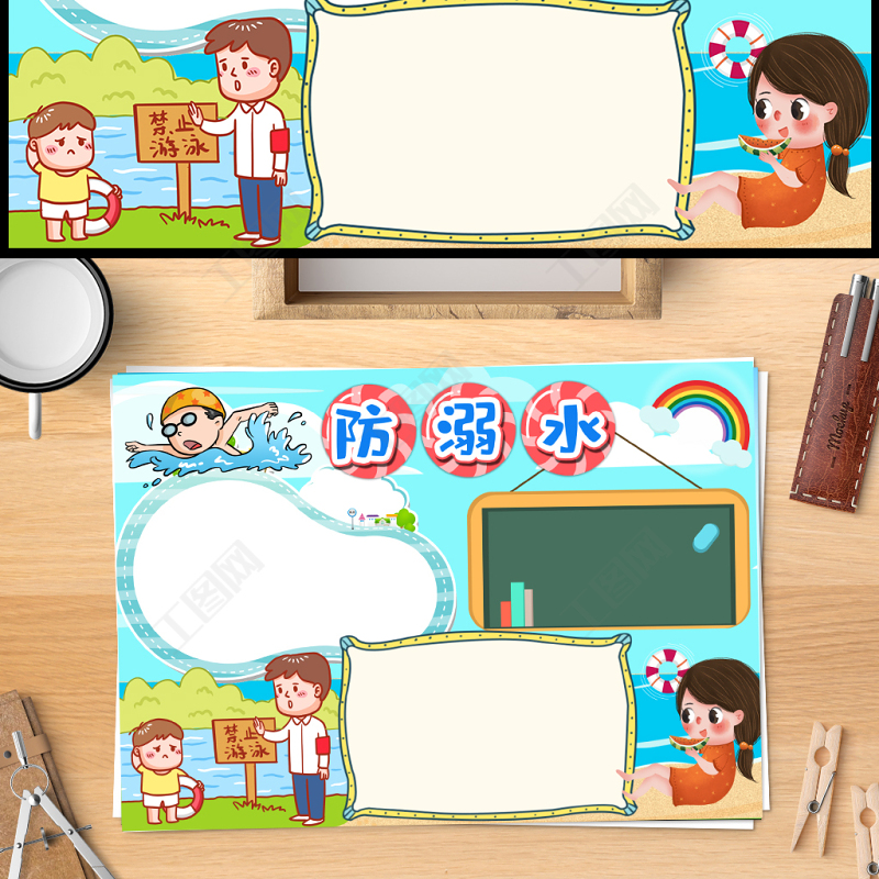 2023夏季防溺水手抄報(bào)創(chuàng)意童趣兒童小學(xué)暑假防溺水安全教育電子小報(bào)模板 Array