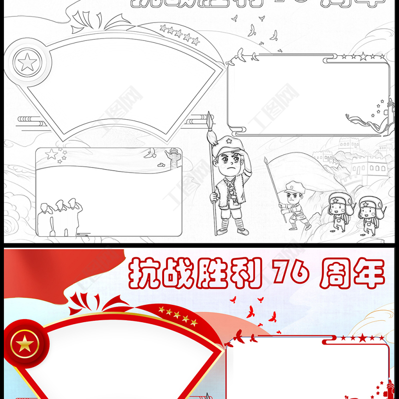 2021 紀(jì)念抗戰(zhàn)勝利76周年 小報(bào) 中小學(xué)生 手抄報(bào)系列 模板下載 Array