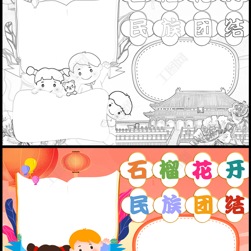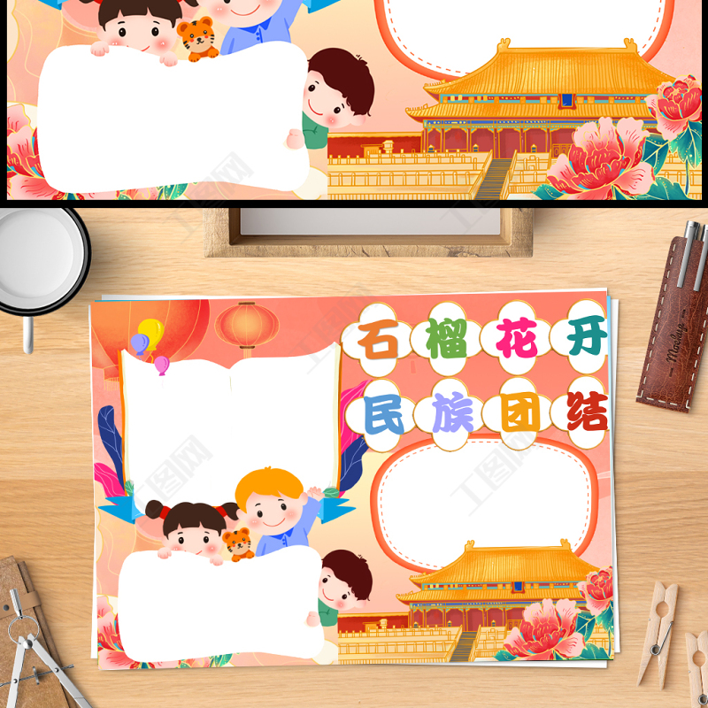2023石榴花開民族團(tuán)結(jié)手抄報國潮卡通風(fēng)傳遞分享夢想的力量word電子小報模板 Array