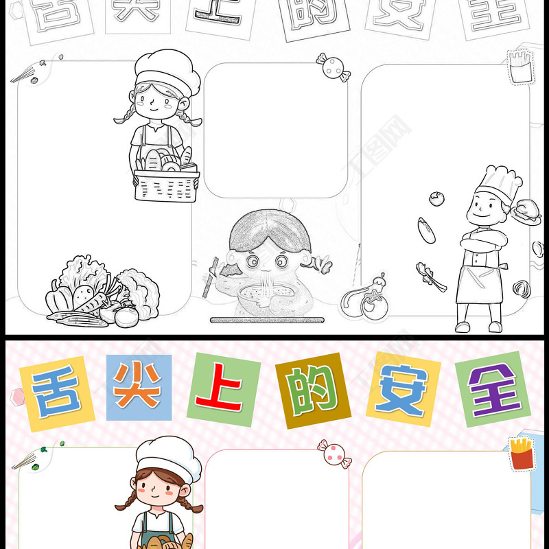 舌尖上的安全手抄報彩色童趣食品安全小常識小報模板下載 Array