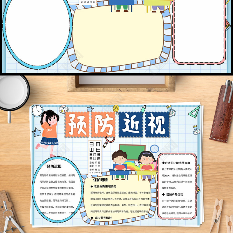 2021預(yù)防近視手抄報(bào)含線稿小報(bào)模板 Array