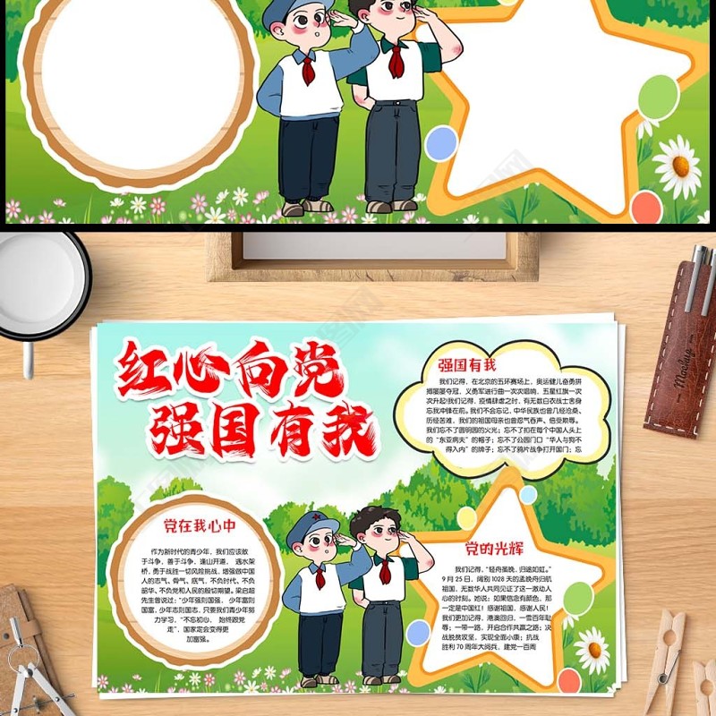 2022紅心向黨強國有我手抄報紅色黨政風(fēng)紅心向黨黨建知識小報模板