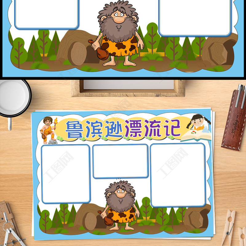 魯濱遜漂流記手抄報藍(lán)色簡約卡通風(fēng)讀后感小報模板下載 Array