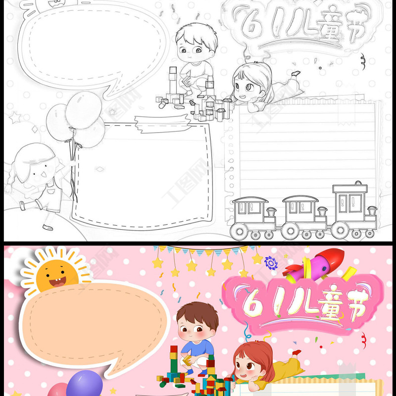 2021不忘童心六一快樂手抄報卡通風格兒童節(jié)主題小報模板包含