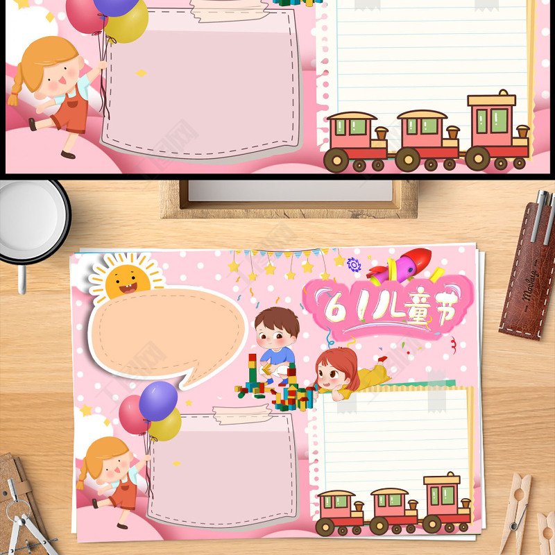 61兒童節(jié)快樂手抄報粉色可愛國際兒童節(jié)介紹小報模板下載 Array