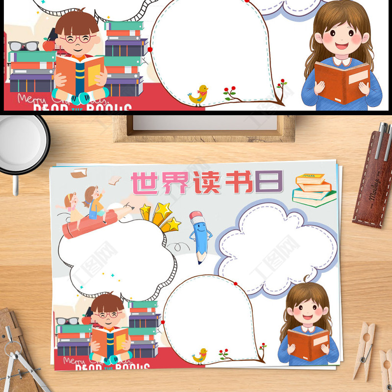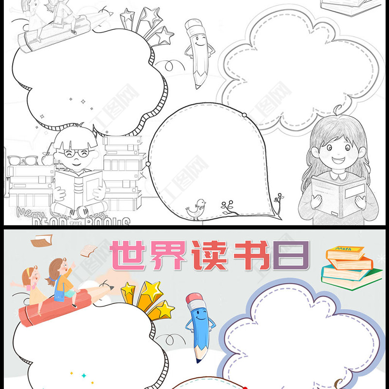 世界讀書日小報卡通小報好書推薦讀書日小報模板下載包含