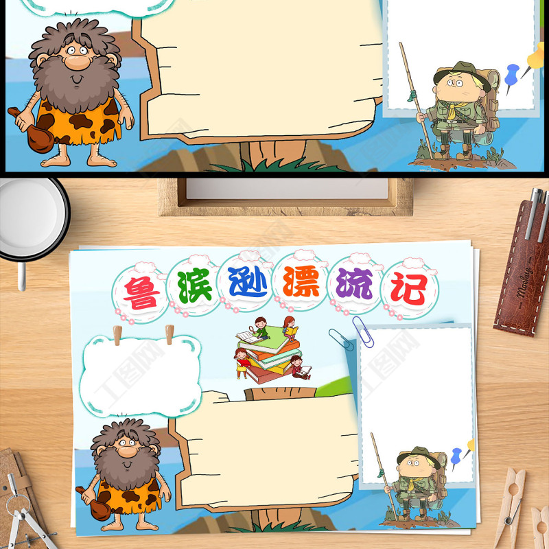 魯濱遜漂流記手抄報(bào)童趣卡通讀后感小報(bào)模板下載 Array