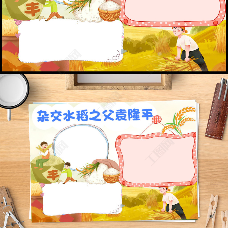 水稻之父袁隆平簡單卡通感動中國人物介紹小報模板下載 Array