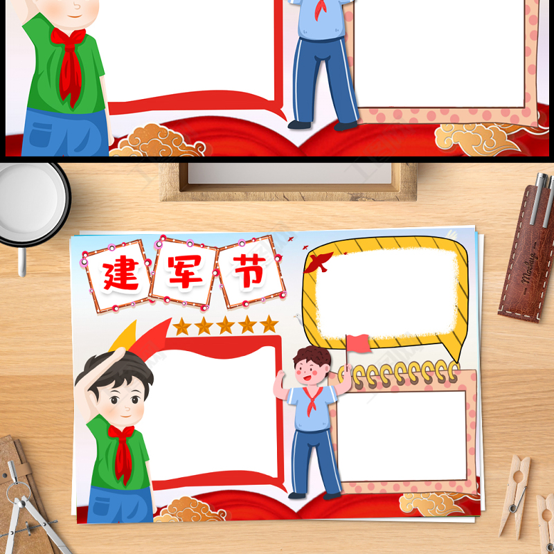 2023建軍節(jié)手抄報紅色創(chuàng)意插畫風(fēng)八一建軍節(jié)節(jié)日介紹word電子小報模板 Array