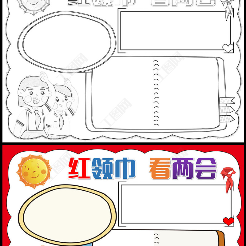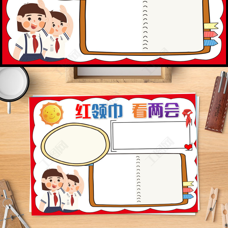 2023全國(guó)兩會(huì)手抄報(bào)紅色簡(jiǎn)約紅領(lǐng)巾看兩會(huì)電子小報(bào)模板 Array