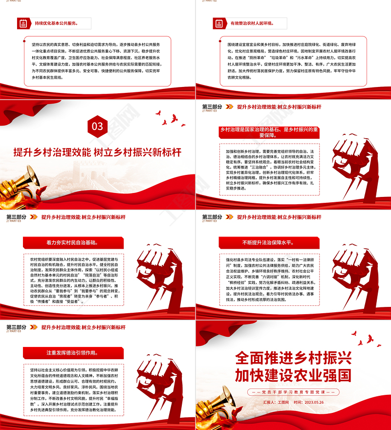 全面推進(jìn)鄉(xiāng)村振興 加快建設(shè)農(nóng)業(yè)強(qiáng)國 匯報人:工圖網(wǎng) 時間:2023.05.26