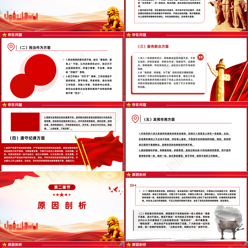 2023主題教育民主生活會PPT紅色簡潔黨員檢視問題原因分析及整改措施模板 Array