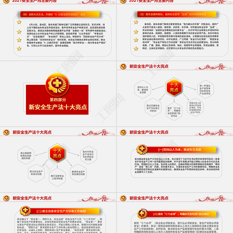 工圖網(wǎng)提供2021落實(shí)安全責(zé)任推動(dòng)安全發(fā)展PPT紅色醒目安全生產(chǎn)月安全培訓(xùn)PPT模板供會(huì)員免費(fèi)下載。更多精彩黨課PPT素材,盡在工圖網(wǎng)。