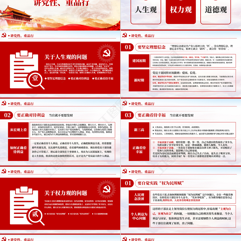 講黨性、重品行在新的歷史時期,一名講黨性重品行的黨員,最根本的是要樹立正確的人生觀、權(quán)力觀和道德觀。這“三觀”是共產(chǎn)黨員的必備素質(zhì),缺乏這些素質(zhì),就不可能成為一名合格的共產(chǎn)黨員。人生觀道德觀權(quán)力觀