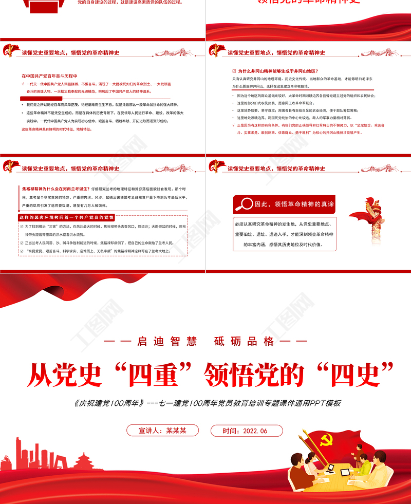 工圖網(wǎng)提供從黨史“四重”領(lǐng)悟黨的“四史”PPT紅色黨政風(fēng)七一建黨黨員教育培訓(xùn)專題課件模板供會(huì)員免費(fèi)下載。更多精彩黨課PPT素材,盡在工圖網(wǎng)。
