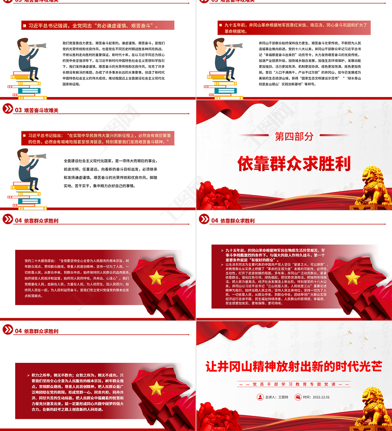 工圖網(wǎng)提供2022讓井岡山精神放射出新的時代光芒PPT黨政精美風(fēng)黨員干部學(xué)習(xí)教育專題黨課黨建課件供會員免費下載。更多精彩黨課PPT素材,盡在工圖網(wǎng)。