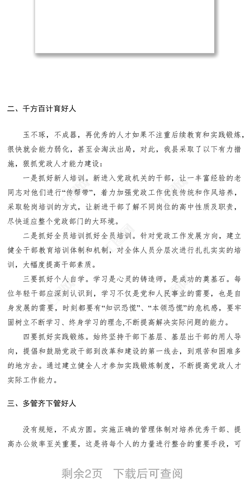 工圖網(wǎng)提供2021人才隊(duì)伍建設(shè)經(jīng)驗(yàn)交流材料供會(huì)員免費(fèi)下載。更多精彩黨課PPT素材,盡在工圖網(wǎng)。