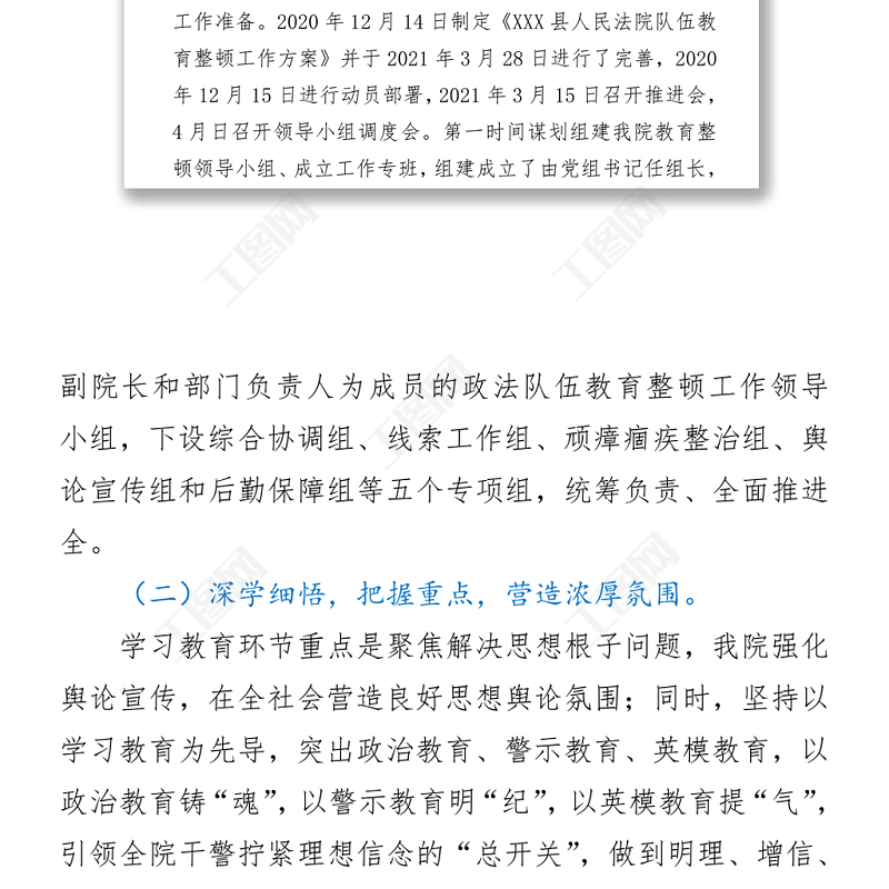 工圖網(wǎng)提供X縣人民法院隊(duì)伍教育整頓學(xué)習(xí)教育環(huán)節(jié)評(píng)估報(bào)告供會(huì)員免費(fèi)下載。更多精彩黨課PPT素材,盡在工圖網(wǎng)。