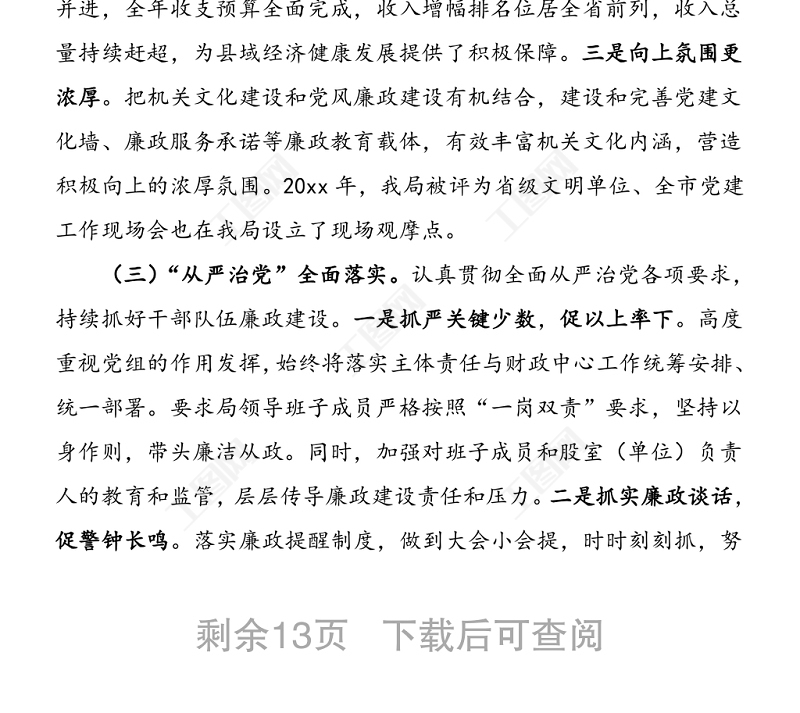 2021年黨風(fēng)廉政建設(shè)黨課講稿及講稿2022年黨風(fēng)廉政建設(shè)警示教育材料2022年度黨支部書記推動(dòng)落實(shí)黨風(fēng)廉政建設(shè)主體責(zé)任述責(zé)述廉報(bào)告2023年黨風(fēng)廉政建設(shè)黨課講稿部機(jī)關(guān)2022年落實(shí)全面從嚴(yán)治黨主體責(zé)任暨黨風(fēng)廉政建設(shè)和反腐敗工作情況報(bào)告2021年下半年黨風(fēng)廉政建設(shè)兩個(gè)責(zé)任分級(jí)約談?wù)勗拑?nèi)容2022年黨風(fēng)廉政建設(shè)工作會(huì)議上的報(bào)告2022年黨風(fēng)廉政建設(shè)和反腐倡廉黨委書記講話稿2022黨委書記黨風(fēng)廉政建設(shè)述職報(bào)告2022年黨風(fēng)廉政建設(shè)工作會(huì)上的報(bào)告醫(yī)院2021年黨風(fēng)廉政建設(shè)工作總結(jié)2022組織部長在黨風(fēng)廉政大會(huì)上的講話2021黨史學(xué)習(xí)教育及加強(qiáng)黨風(fēng)廉政建設(shè)黨課黨支部書記推動(dòng)落實(shí)黨風(fēng)廉政建設(shè)主體責(zé)任述責(zé)述廉報(bào)告2022制定下發(fā)2022年黨風(fēng)廉政建設(shè)工作要點(diǎn)和全面從嚴(yán)治黨責(zé)任清單與各科室負(fù)2022關(guān)于上半年黨風(fēng)廉政建設(shè)工作情況的通報(bào)