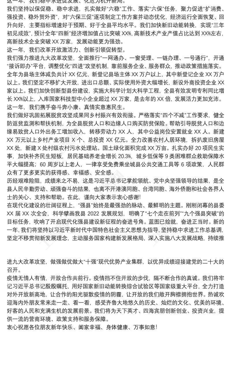 2022年春節(jié)團(tuán)拜會(huì)致辭