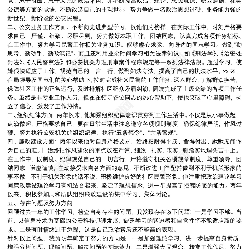 公安個人現(xiàn)實表現(xiàn)材料 Array