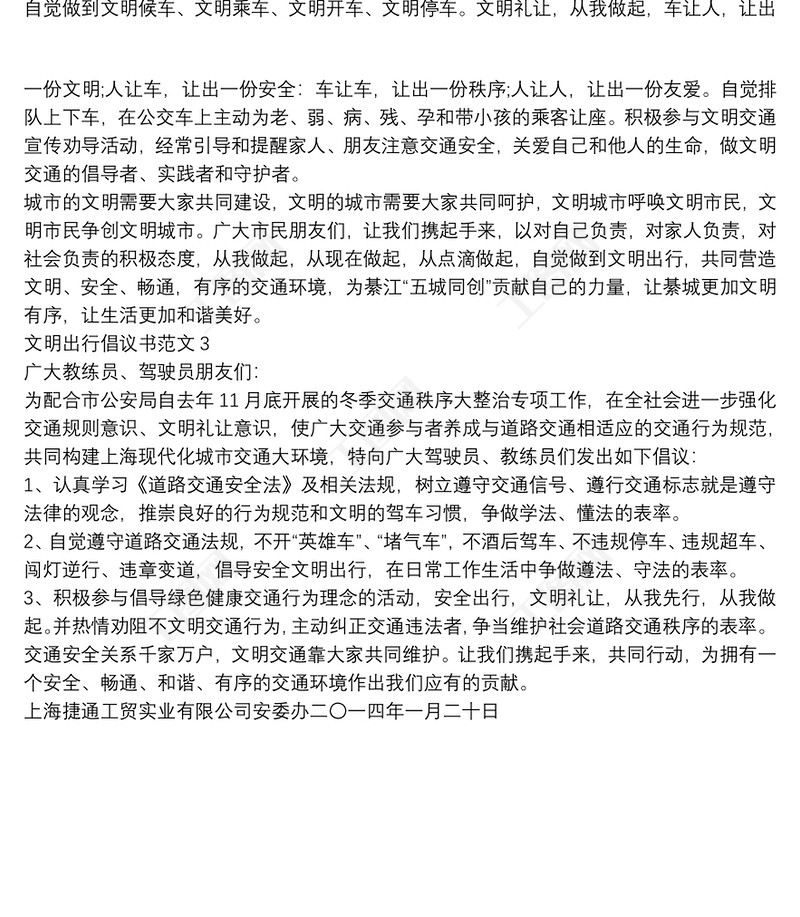 交通安全文明出行倡議書范文三篇