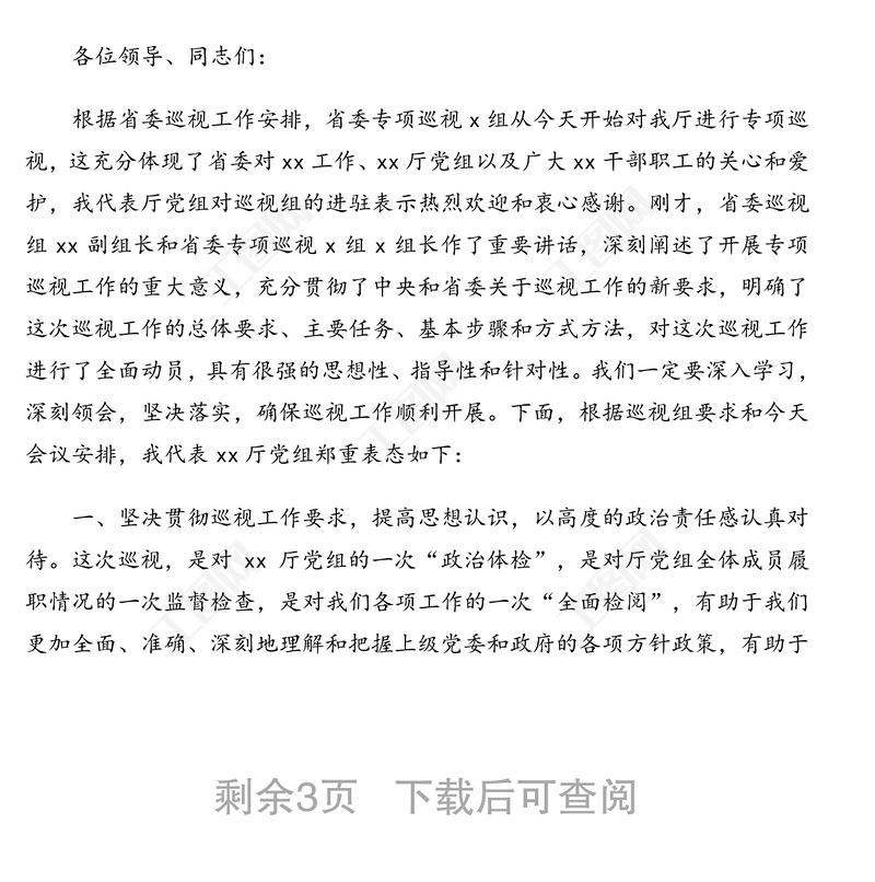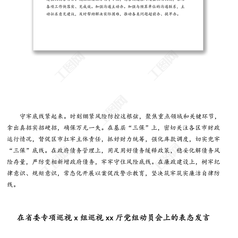 工圖網(wǎng)提供在巡視組進(jìn)駐動員會上的表態(tài)發(fā)言(2篇)供會員免費下載。更多精彩黨課PPT素材,盡在工圖網(wǎng)。