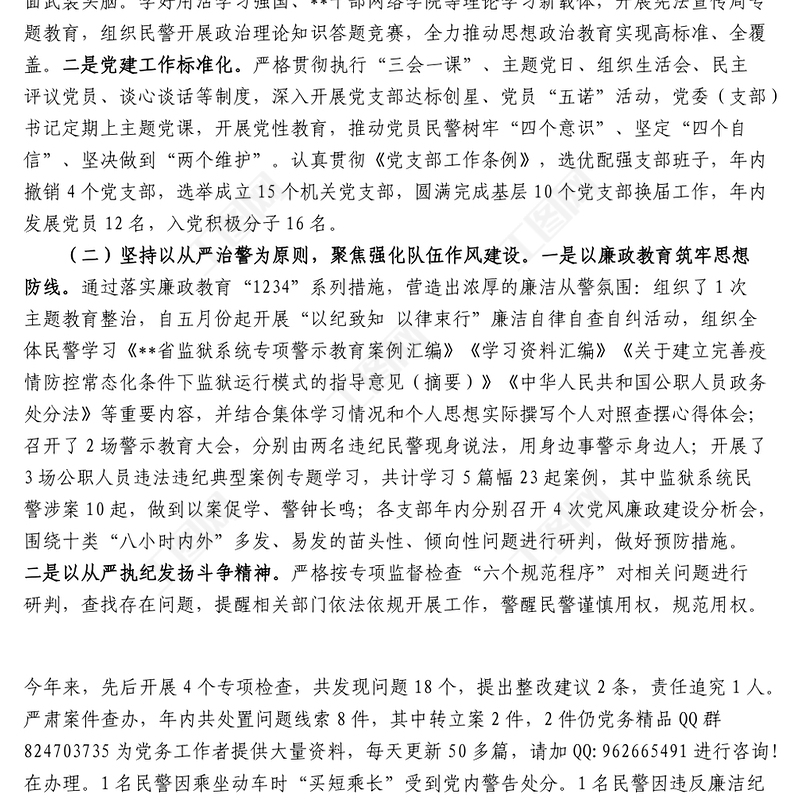 監(jiān)獄黨委書記抓機(jī)關(guān)黨建工作述職報(bào)告 (2)