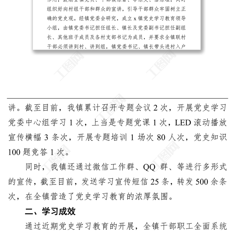 > 報(bào)告 > x鎮(zhèn)關(guān)于開(kāi)展黨史學(xué)習(xí)教育階段工作情況報(bào)告.DOCX 【圖片、文字、動(dòng)畫(huà)均可編輯】