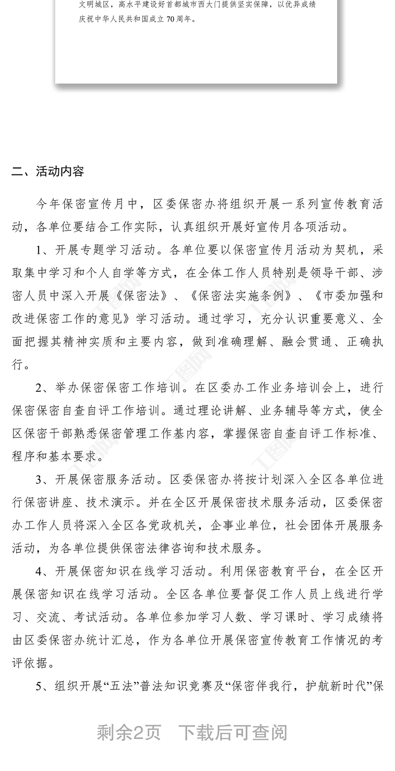 工圖網(wǎng)提供【計(jì)劃總結(jié)】XX區(qū)2019年保密宣傳教育月活動(dòng)計(jì)劃供會(huì)員免費(fèi)下載。更多精彩黨課PPT素材,盡在工圖網(wǎng)。