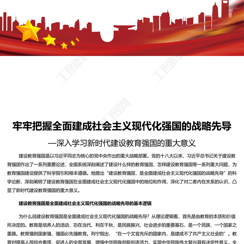 工圖網(wǎng)提供牢牢把握全面建成社會(huì)主義現(xiàn)代化強(qiáng)國(guó)的戰(zhàn)略先導(dǎo)PPT黨政風(fēng)學(xué)習(xí)建設(shè)教育強(qiáng)國(guó)的重大意義課件模板下載(講稿)供會(huì)員免費(fèi)下載。更多精彩黨課PPT素材,盡在工圖網(wǎng)。