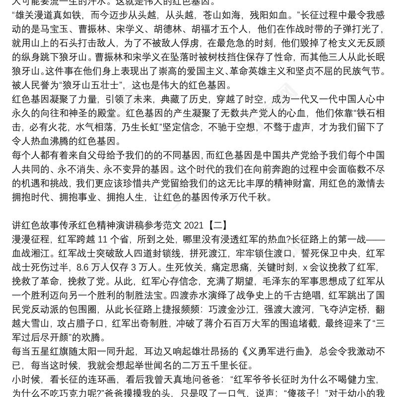 講紅色故事傳承紅色精神演講稿參考范文2021 Array