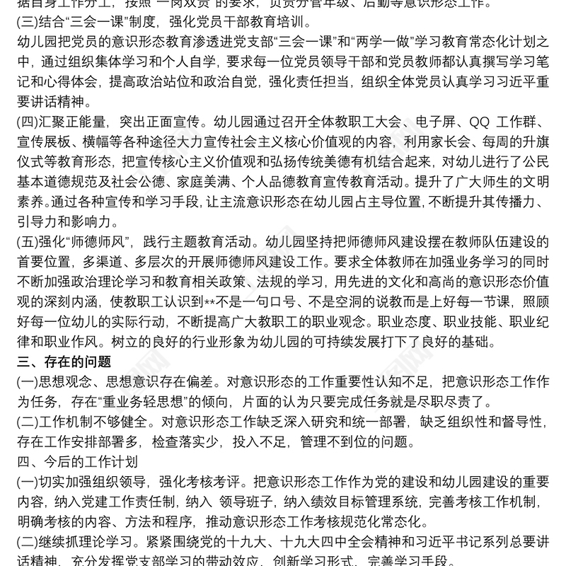 2021幼兒園意識(shí)形態(tài)工作自查報(bào)告三篇