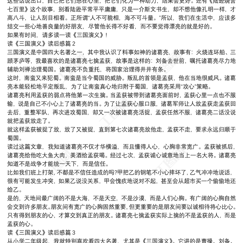 《三國演義》名著學生讀后感(精選5篇)5篇包含