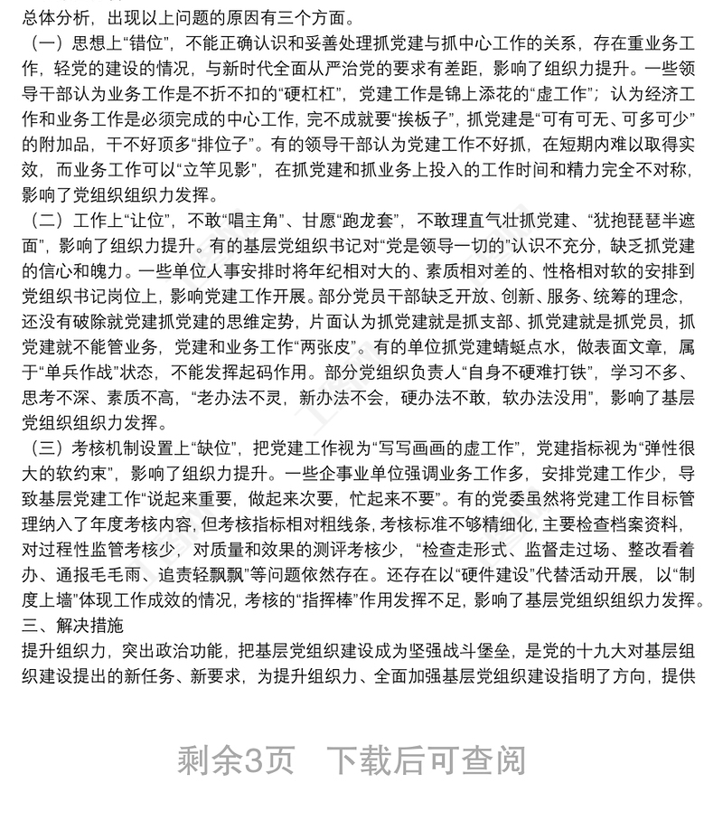 20**年基層黨組織建設(shè)存在的問題及解決措施 Array