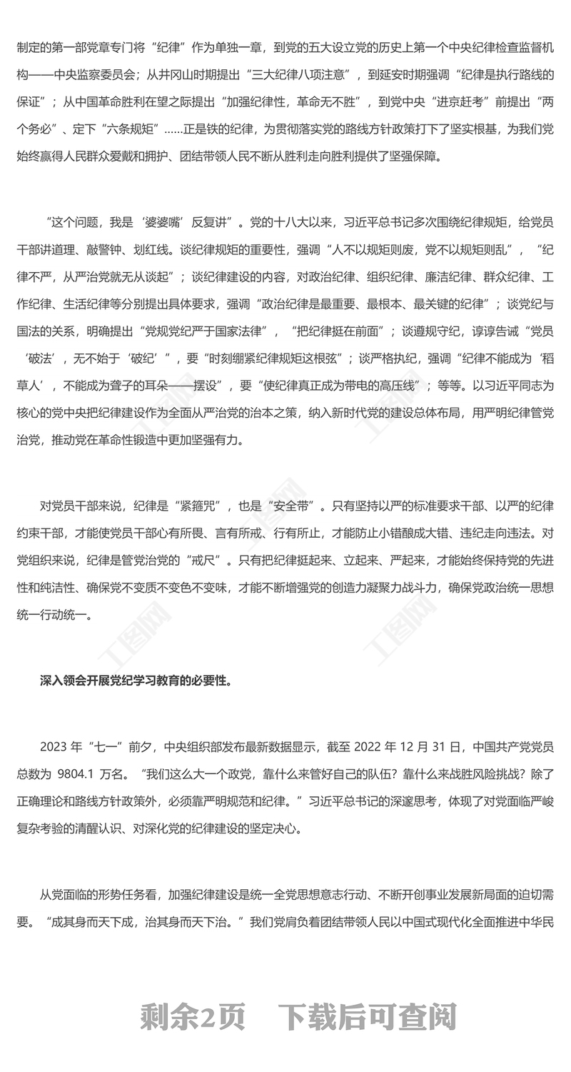 > 黨課講稿 > 學(xué)紀(jì)知紀(jì)明紀(jì)守紀(jì)PPT全黨開展黨紀(jì)學(xué)習(xí)教育工作課件模板(講稿).DOCX 【圖片、文字、動畫均可編輯】