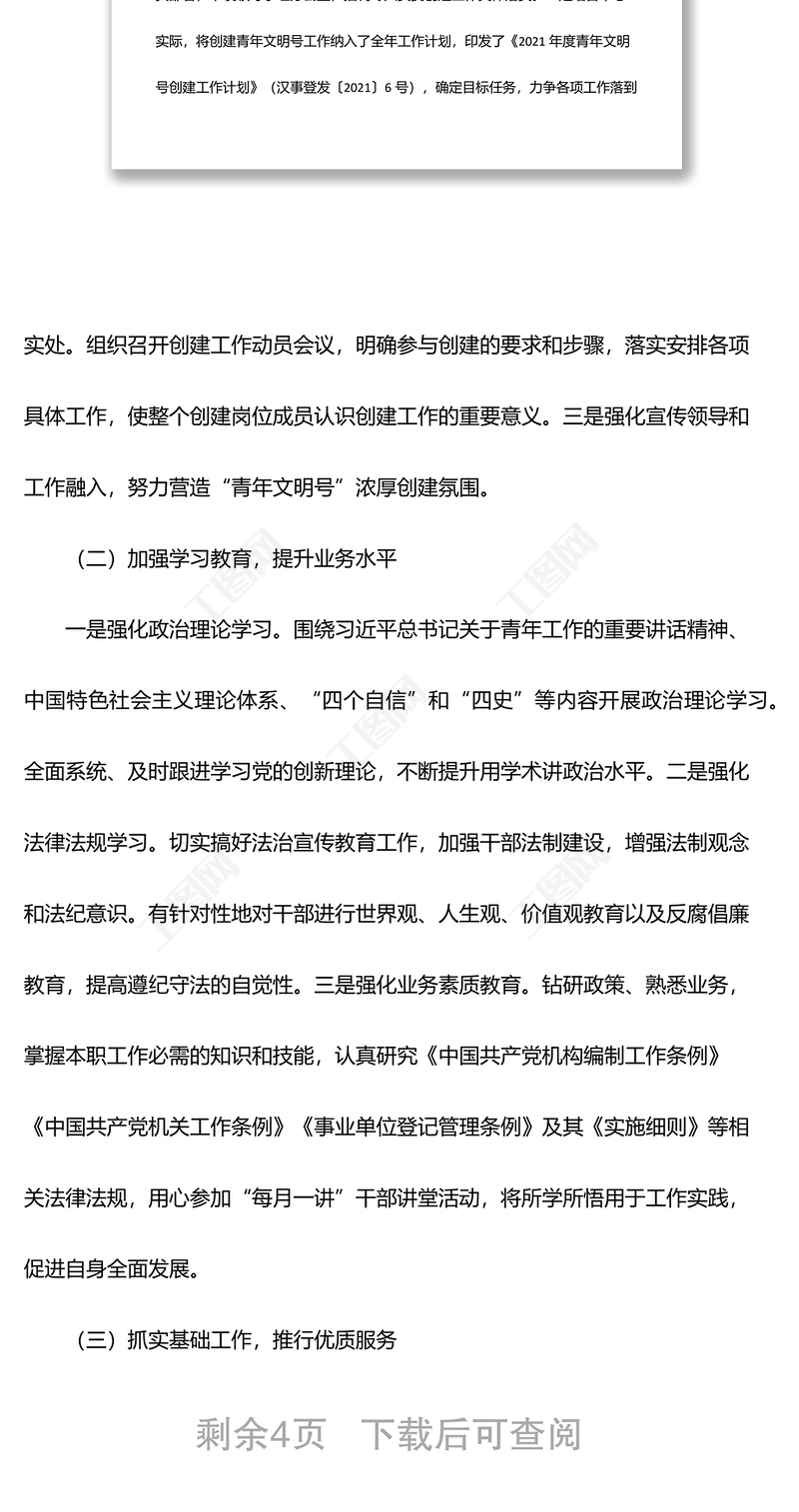 工圖網提供某中心創(chuàng)建青年文明號工作總結供會員免費下載。更多精彩黨課PPT素材,盡在工圖網。