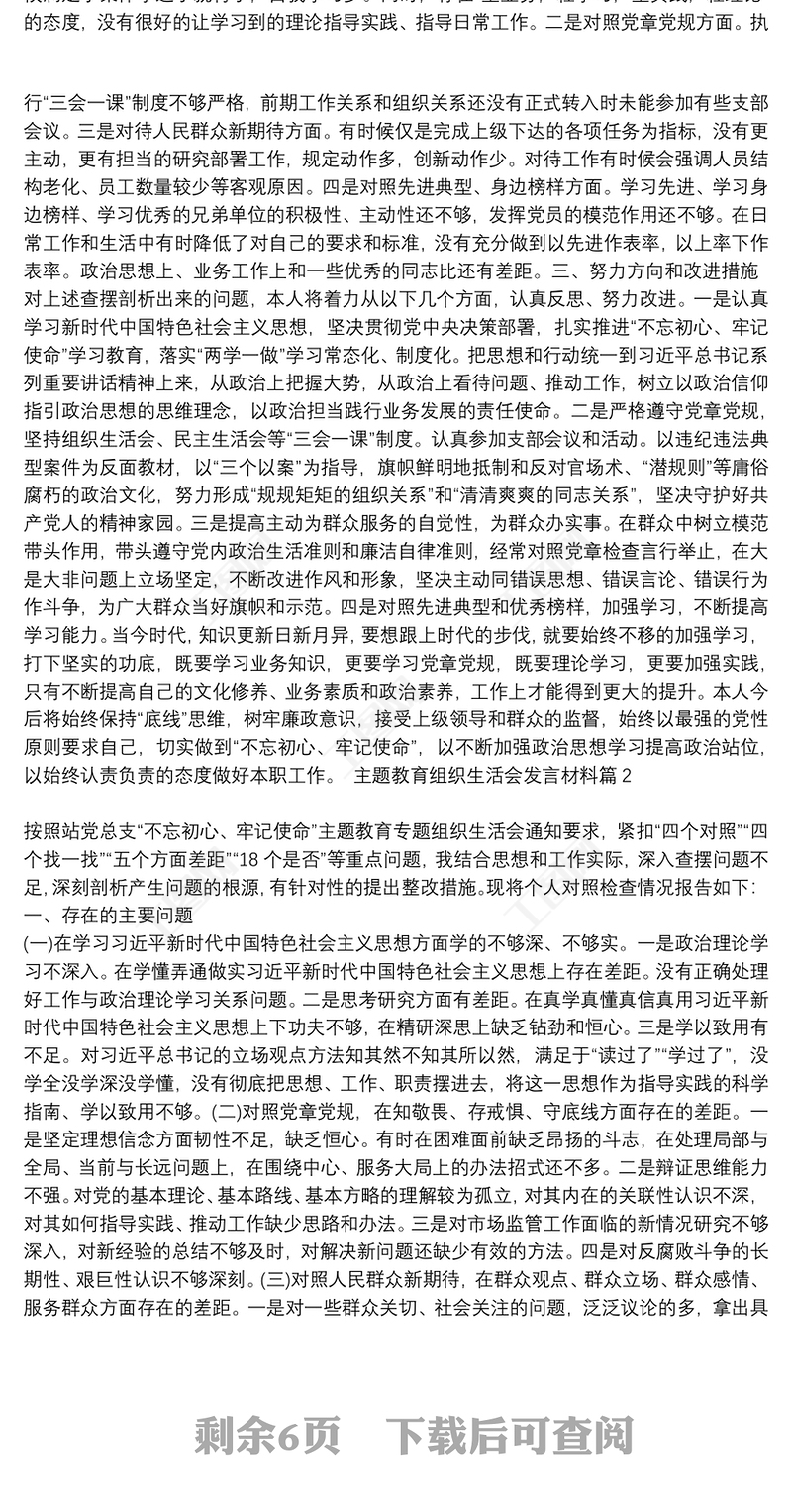 工圖網(wǎng)提供主題教育組織生活會發(fā)言材料6篇供會員免費下載。更多精彩黨課PPT素材,盡在工圖網(wǎng)。