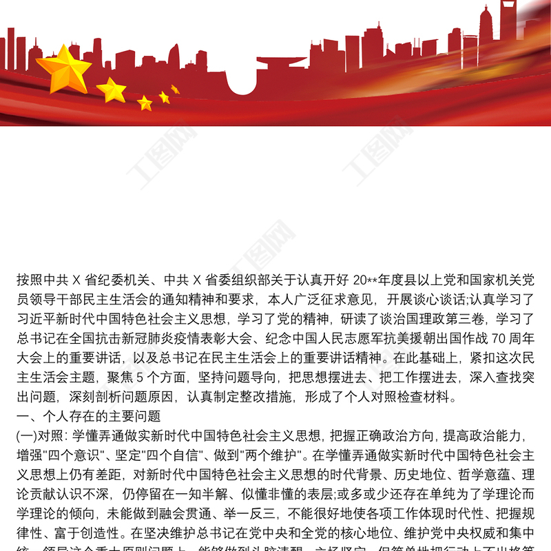 工圖網(wǎng)提供公司黨委書記20xx年度五個(gè)方面民主生活會(huì)個(gè)人對(duì)照檢查材料供會(huì)員免費(fèi)下載。更多精彩黨課PPT素材,盡在工圖網(wǎng)。