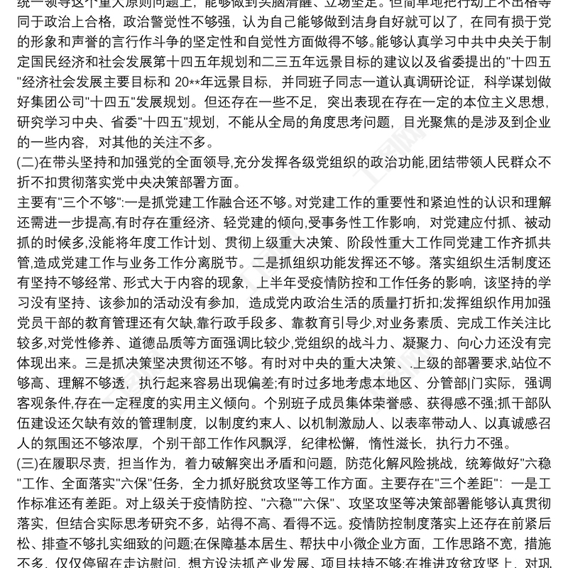 “防風(fēng)險(xiǎn)、守底線”專題民主生活會(huì)組織生活會(huì)個(gè)對(duì)照檢查剖析材料包含