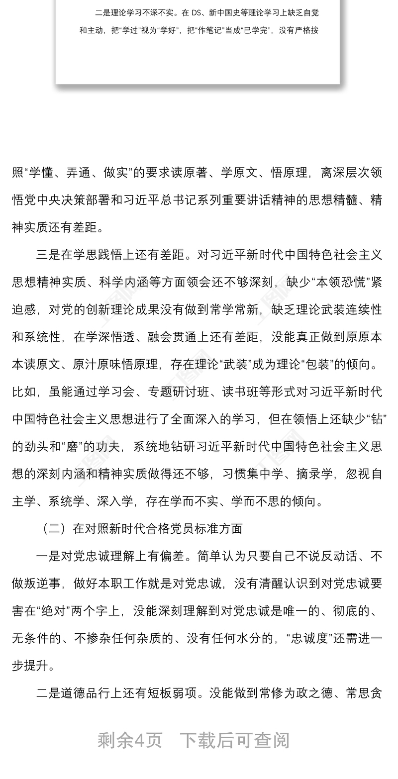 2021年DS學習教育組織生活會個人對照檢查材料范文四個對照