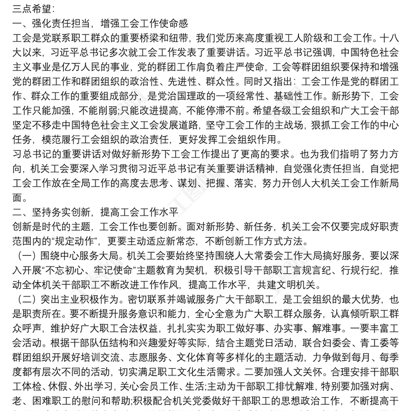 在機(jī)關(guān)工會(huì)換屆選舉大會(huì)上的講話